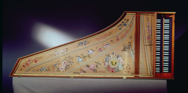 Zweimanualiges Cembalo nachPascal Taskin, Paris 1769, Länge 2,32m, Tonumfang von FF - f³, Untermanual8' + 4', Obermanual 8' + Lautenzug, Transponiereinrichtung um einen Ganzton, Schiebekoppel, Untertasten mit Ebenholzauflage, Obertasten aus Ebenholz mit Knochenauflage, Fußgestell. Sonderausstattung: Individuelle Gestaltung des Gehäuses |