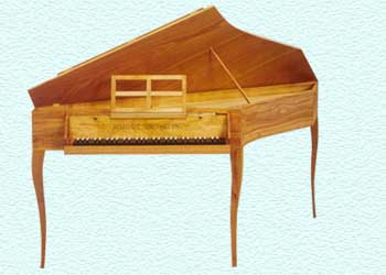 Spinet after Joh.Heinr.Silbermann, Straßburg, 1,87m long, compass: FF-f³, 8' sound, divided buffstop, 1/2 tone transposition,