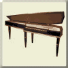 Clavichord nach Christian Gottlob Hubert, Ansbach 1787, Länge 1,40m, Umfang der Klaviatur AA - f³, doppelchörig mit Messing besaitet, Stimmtonhöhe a' 415 Hz, bundfrei von FF-d, gebunden von dis-f³, wobei jeweils a und d bundfrei sind, Untertasten mit Ebenholzauflage, Obertasten aus Ebenholz mit Knochenauflage, vier ausschraubbare Beine |