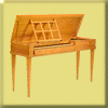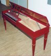 Cembal d'Amour nach Gottfried Silbermann 1721, Länge 2,35m, Umfang der Klaviatur FF - f³, doppelchörig besaitet, Stimmtonhöhe a' = 415 Hz, Untertasten mit Ebenholzauflage, Obertasten Ebenholz mit Knochenauflage, fünf ausschraubbare Beine