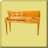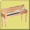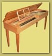 Clavichord nach Joh. Chr. Fleischer Hamburg 1729, Länge 1,70m, Umfang der Klaviatur FF-f³ Oktävchen, doppelchörig besaitet, Tonhöhe 415 Hz, bundfrei, Untertasten mit Ebenholzauflage, Obertasten Ebenholz mit Knochenauflage, vier ausschraubbare Beine
